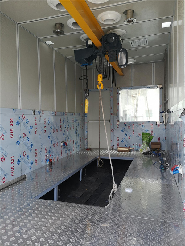 5.8集裝箱試驗(yàn)室 5.8.1概述 集裝箱外型尺寸長9500(包含控制間)×寬3800×高3700mm(不包含送排風(fēng)系統(tǒng)),其中發(fā)動(dòng)機(jī)測試間內(nèi)部長度為6.95米,控制間內(nèi)部長度約2.10米箱體六面體結(jié)構(gòu)?烧w搬遷移動(dòng)。整體式集裝箱包含以下內(nèi)容:集裝箱本體、吸音和隔音墻壁、防火觀察窗、防滑鋁合金地板,隔聲門、預(yù)留進(jìn)出水、燃油和壓縮空氣的內(nèi)部管路,開關(guān)設(shè)備和電線,防爆照明系統(tǒng),發(fā)動(dòng)機(jī)進(jìn)排氣系統(tǒng)、箱體送排風(fēng)系統(tǒng)等。